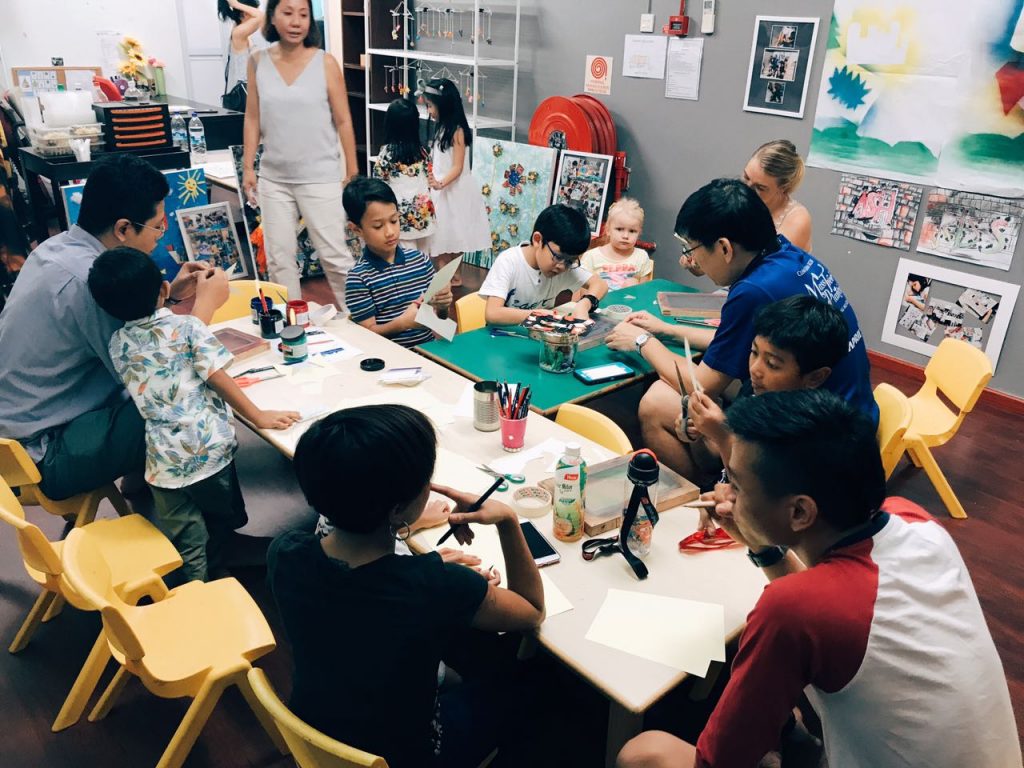 We also provided an interactive platform for parents to engage with the children during the Art Exhibition through a special Parent-Child Art workshop, run collaboratively by our in house Art Teacher, Teacher Iffah. The parents and their children will pair up to design their own tote bags while learning the technique of screen printing. The turn up was more than we had expected and the parents got their hands into the activity, working hand in hand with their children to ensure that they get the best product for their tote bag.